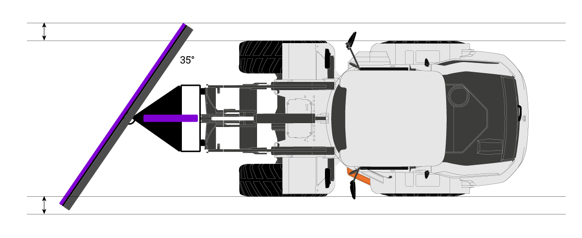 Die Mindestbreite Ihres diagonalen Schneepflugs hängt von der Spurweite des Trägerfahrzeug ab. In der maximalen Schwenkposition (35°) sollte der Pflug die gesamte Spurweite des Trägerfahrzeug abdecken. Die zusätzliche Breite des Pflugs hängt davon ab, wie gut befahrbar das Gelände ist und wie viel Gewicht das Trägerfahrzeug tragen kann.